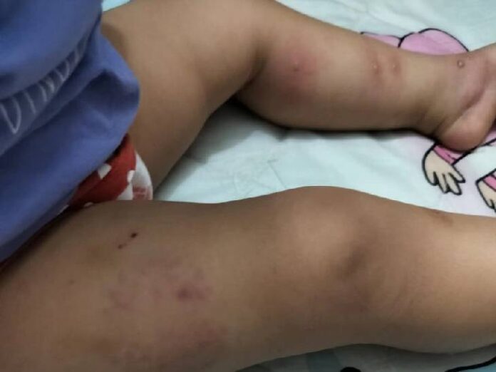 4 अगस्त को जब वह अपनी बेटी को डे केयर से लेकर आईं तो वह जोर-जोर से रो रही थी। कपड़े बदलने पर उसकी दोनों जांघों पर गोल घेरे में दांत काटने के निशान दिखाई दिए। मां ने बच्ची को डॉक्टर को दिखाया तो उन्होंने चोट को दांत से काटा जाना बताया।