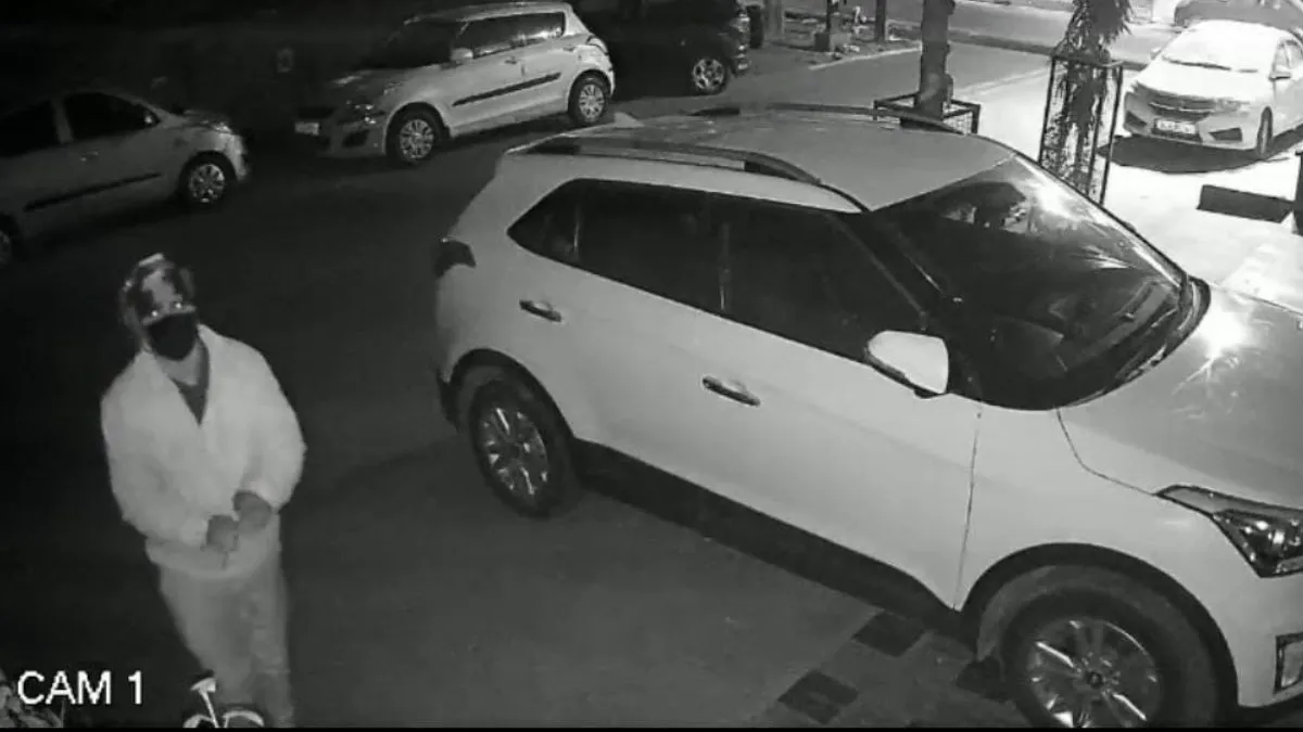 इस कार से एक नकाबपोश शख्स उतरता है, जिसके हाथ में छड़ी होती है। जो शख्स छड़ी से आसपास लगे सीसीटीवी कैमरों के तार तोड़ता हुआ दिखता है। जिसके बाद सीसीटीवी कैमरों के रिकार्डिंग बंद हो जाती है।