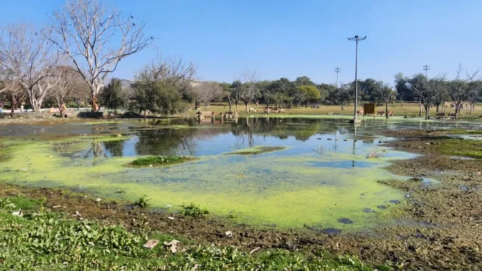 असल न्यूज़: रोहिणी सेक्टर-20 में डिस्ट्रिक्ट पार्क का आधा हिस्सा पिछले कई महीनों से पानी में डूबा हुआ है। मॉनसून की बारिश का पानी पार्क के एक हिस्से में जमा हो गया है, जबकि दूसरे हिस्से में बने छठ घाट का पानी अभी तक नहीं निकाला गया है। इसके चलते पार्क में खेलने आने वाले बच्चों और टहलने आने वाले लोगों को परेशानी हो रही है।