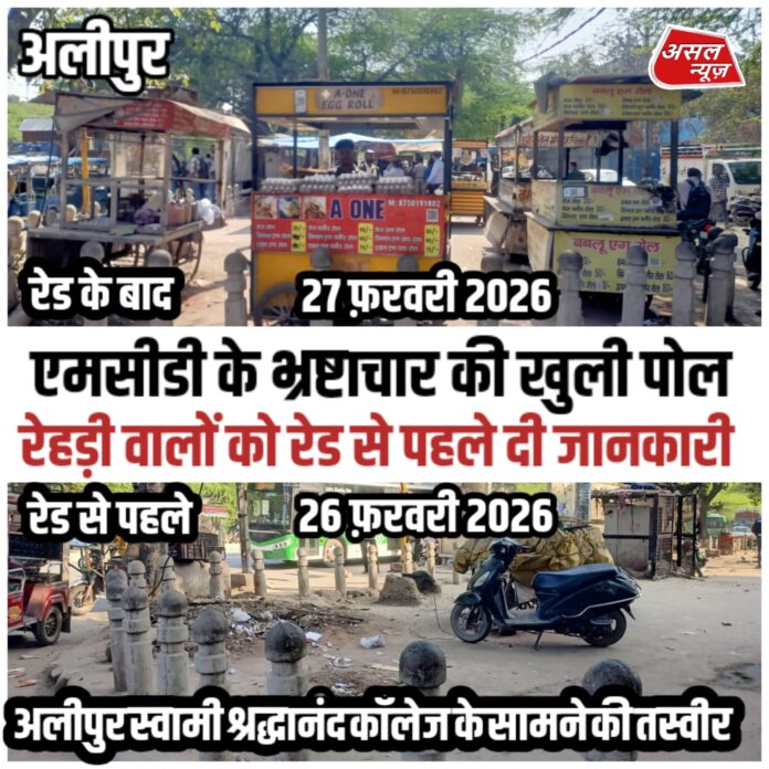 स्थानीय सूत्रों के मुताबिक 27 फरवरी 2026 को MCD की ओर से अभियान चलाया जाना था, लेकिन रेड से पहले ही कथित रूप से रेहड़ी-पटरी संचालकों को जानकारी दे दी गई। नतीजतन उस दिन अलीपुर इलाके में सड़क किनारे दुकानें नहीं दिखीं, जबकि अगले ही दिन फिर से वही हालात बन गए।