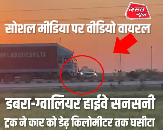 डबरा-ग्वालियर हाईवे पर सनसनी: ट्रक ने कार को डेढ़ किलोमीटर तक घसीटा, वीडियो वायरल