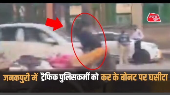 असल न्यूज़: जनकपुरी में एक सनसनीखेज घटना सामने आई है, जहां एक ट्रैफिक पुलिसकर्मी को कार चालक ने बोनट पर घसीट दिया। इस पूरी घटना का वीडियो सोशल मीडिया पर तेजी से वायरल हो रहा है।