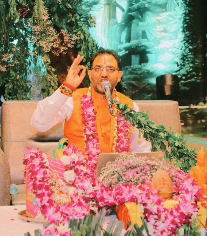 मुख्य यजमान संतोष मुकेश गुप्ता व शिवांगी सौरभ गुप्ता परिवार की ओर से राष्ट्र कल्याणार्थ किया गया है। श्रीमद्भागवत कथा का श्रवण कराते हुए श्री अजय भाई ने कहा,कि हम शक्ति मिलने के उपरांत अहंकार के मद में विश्व में अशांति का माहौल उत्पन्न करते हैं,जबकि प्रभु ने स्वयं हमारा जीवन मरण अपने हाथ में लिया हुआ है।