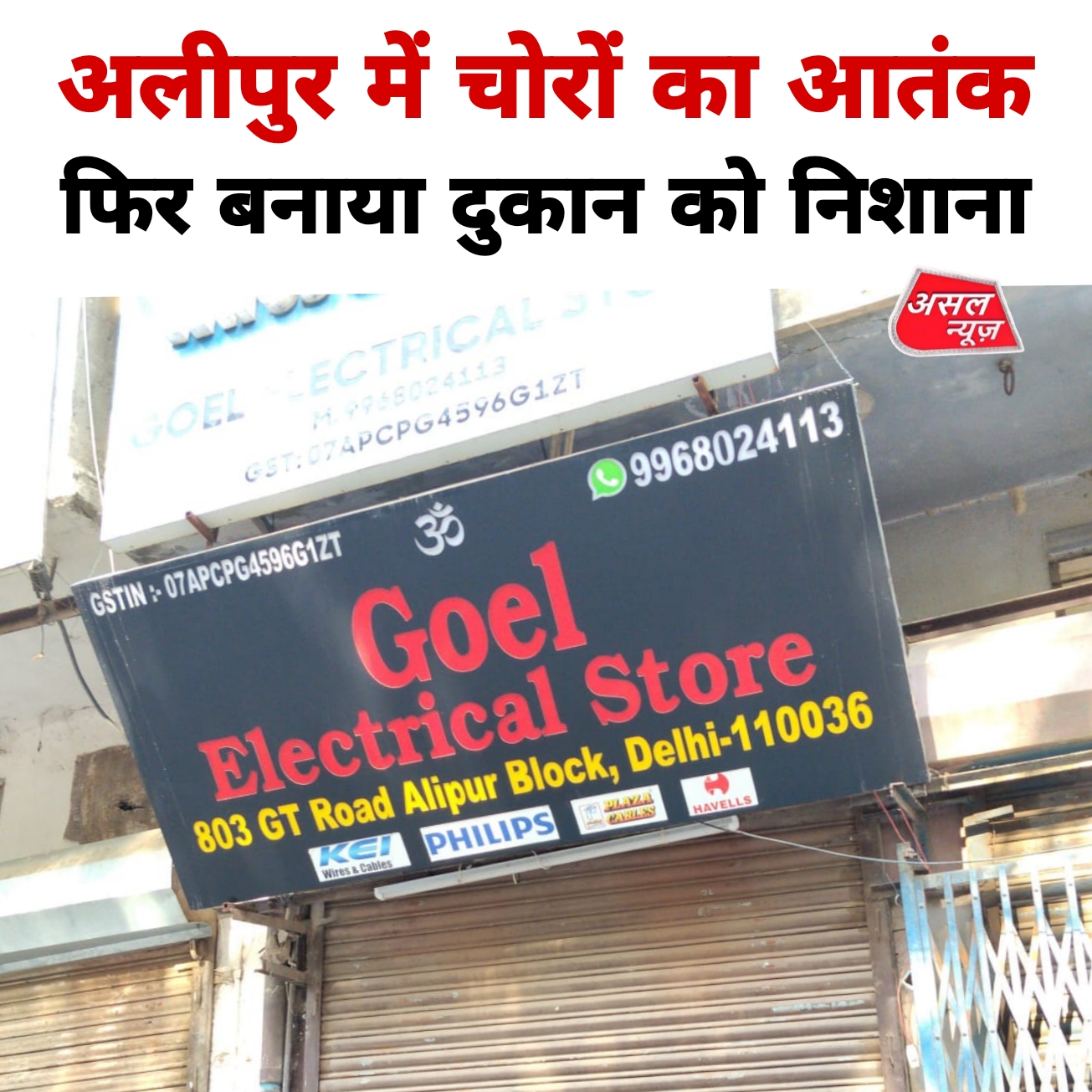 अलीपुर इलाके में चोरों का आतंक, देर रात ब्लॉक् पर बिजली के सामान की दुकान को बनाया निशाना.